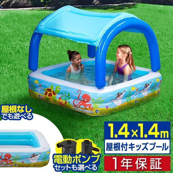 楽天市場 1年保証 プール 屋根付き ビニールプール 屋根付きプール 1 4m 日よけ付き サンシェードプール 幅140cm 奥行140cm 電動ポンプ 水遊び おもちゃ 屋外 キッズプール ベビープール レジャープール ファミリープール 家庭用プール 子供用プール 送料無料